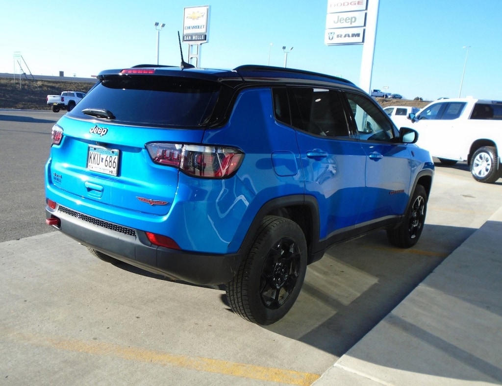 Check out this pre-owned 2023 Jeep Compass we recently got in. This Jeep Compass Trailhawk has a tough exterior complemented by a well-designed interior that offers all the comforts you crave. Stylish and fuel efficient. It's the perfect vehicle for keeping your fuel costs down and your driving enjoying up. Take home this Jeep Compass Trailhawk, and you will have the power of 4WD. It's a great feature when you need to drive over tricky terrain or through inclement weather. Low, low mileage coupled with an exacting maintenance program make this vehicle a rare find. Marked by excellent quality and features with unmistakable refined leather interior that added value and class to the Jeep Compass Trailhawk.