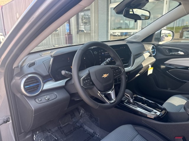 This 2025 Chevrolet Trax LT is offered to you for sale by Dan Welle Chevrolet CDJR. This Chevrolet includes: EMISSIONS, COLORADO, CONNECTICUT, DELAWARE, MAINE, MARYLAND, MASSACHUSETTS, MINNESOTA, NEVADA, NEW JERSEY, NEW YORK, OREGON, PENNSYLVANIA, RHODE ISLAND, VERMONT, VIRGINIA AND WASHINGTON STATE REQUIREMENTS DRIVER CONFIDENCE PACKAGE Rear Parking Aid Adaptive Cruise Control Blind Spot Monitor Cruise Control Cross-Traffic Alert TRANSMISSION, 6-SPEED AUTOMATIC (STD) A/T 6-Speed A/T LT CONVENIENCE PACKAGE Power Mirror(s) Heated Steering Wheel Heated Mirrors Heated Front Seat(s) ENGINE, ECOTEC 1.2L TURBO DOHC DI WITH VARIABLE VALVE TIMING (VVT) E85-compatible 3 Cylinder Engine Gasoline Fuel Turbocharged *Note - For third party subscriptions or services, please contact the dealer for more information.* Want more room? Want more style? This Chevrolet Trax LT is the vehicle for you. This vehicle won't last long, take it home today. Beautiful color combination with Sterling Gray Metallic exterior over JET BLACK WITH BLUE ACCENTS interior making this the one to own!