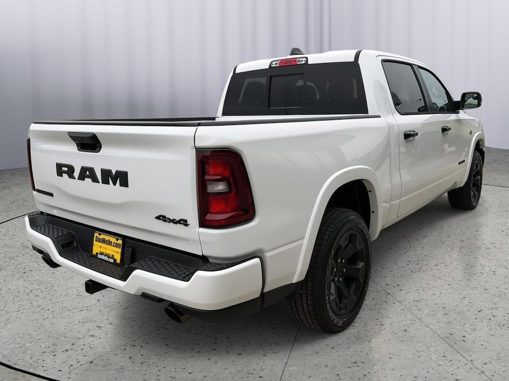 This outstanding example of a 2026 Ram 1500 Big Horn is offered by Dan Welle Chevrolet CDJR. This Ram includes: BRIGHT WHITE CLEARCOAT MOPAR FRONT Floor Mats MYFLEXCARE SERVICE PLAN TRANSMISSION: 8-SPEED AUTOMATIC (8HP75) 8-Speed A/T A/T MANUFACTURER'S STATEMENT OF ORIGIN BIG HORN LEVEL 2 EQUIPMENT GROUP Multi-Zone A/C Driver Vanity Mirror Steering Wheel Audio Controls Integrated Turn Signal Mirrors HD Radio Chrome Wheels Tires - Front Performance Passenger Vanity Mirror Navigation System A/C Power Mirror(s) Heated Steering Wheel Climate Control Auto-Dimming Rearview Mirror Universal Garage Door Opener Heated Mirrors Security System Leather Steering Wheel Rear Defrost AM/FM Stereo Heated Front Seat(s) Satellite Radio Adjustable Pedals Tires - Rear Performance Bluetooth Connection Passenger Illuminated Visor Mirror Premium Sound System Driver Illuminated Vanity Mirror Power Folding Mirrors Requires Subscription Remote Trunk Release MP3 Capability CLUSTER 12 TFT COLOR DISPLAY QUICK ORDER PACKAGE 27Z BIG HORN ENGINE: 5.7L V8 HEMI MDS VVT ETORQUE Gasoline/Mild Electric Hybrid 8 Cylinder Engine TRAILER BRAKE CONTROL DUAL-PANE PANORAMIC SUNROOF Panoramic Roof Generic Sun/Moonroof Sun/Moonroof 3.92 REAR AXLE RATIO NIGHT EDITION Integrated Turn Signal Mirrors Chrome Wheels Tires - Front Performance Locking/Limited Slip Differential Power Mirror(s) Heated Mirrors Tires - Rear Performance Power Folding Mirrors *Note - For third party subscriptions or services, please contact the dealer for more information.* Pull up in the vehicle and the valet will want to parked on the front row. This Ram 1500 Big Horn is the vehicle others dream to own. Don't miss your chance to make it your new ride. Equipped with 4WD, this Ram 1500 Big Horn gives you added confidence to tackle the surface of any path you take. This Ram 1500 Big Horn is equipped with navigation, so you no longer have to wonder if you're headed in the right direction.