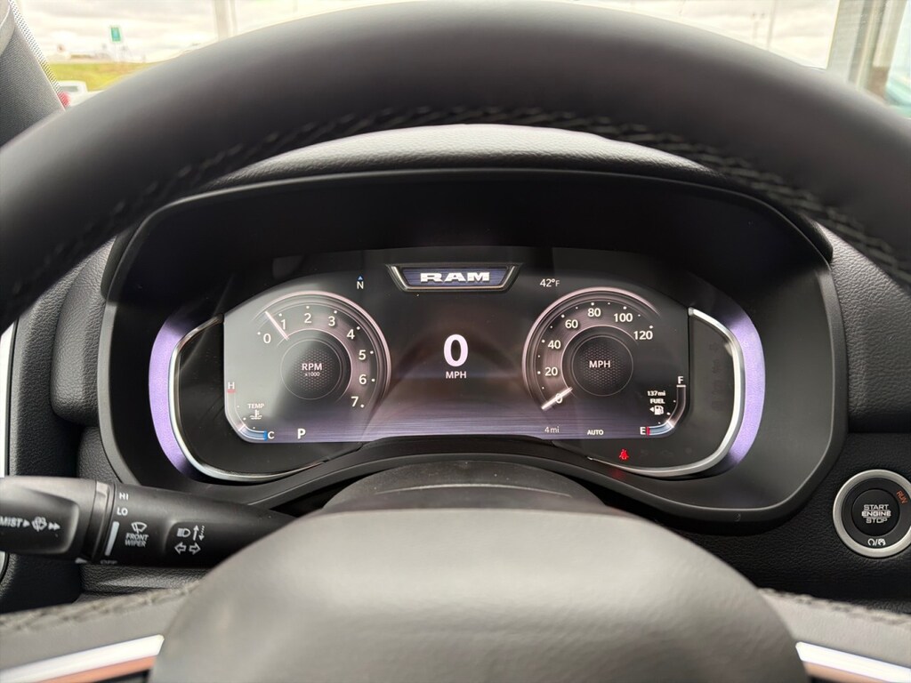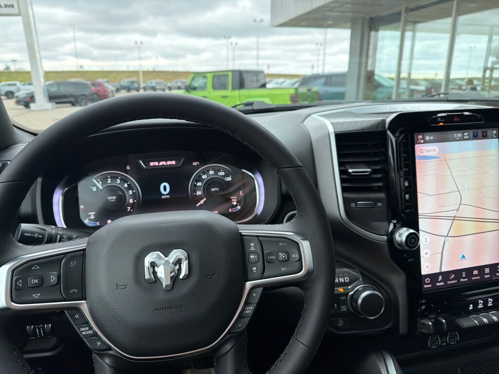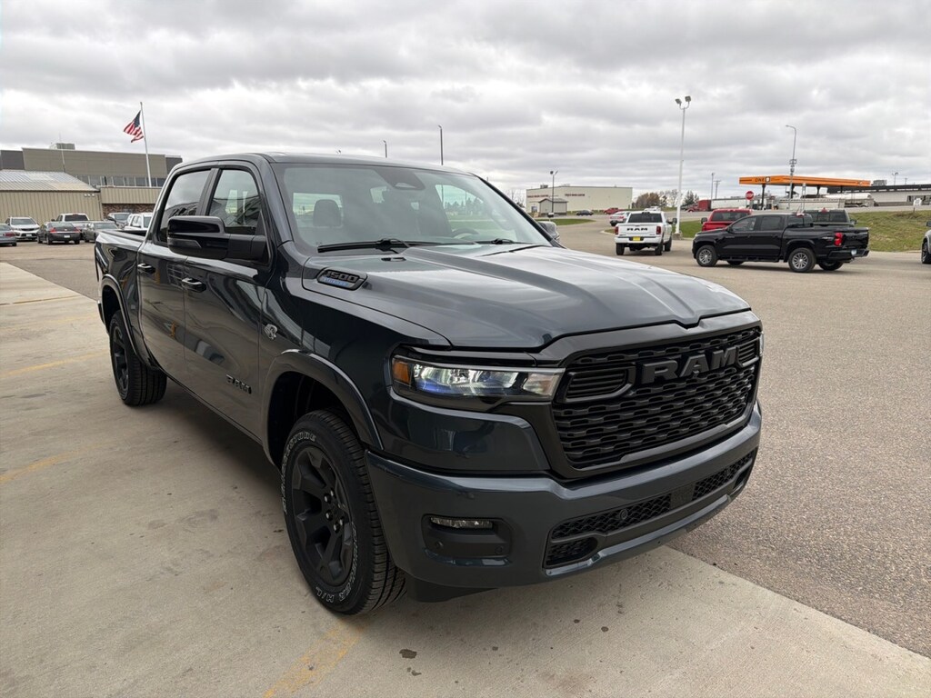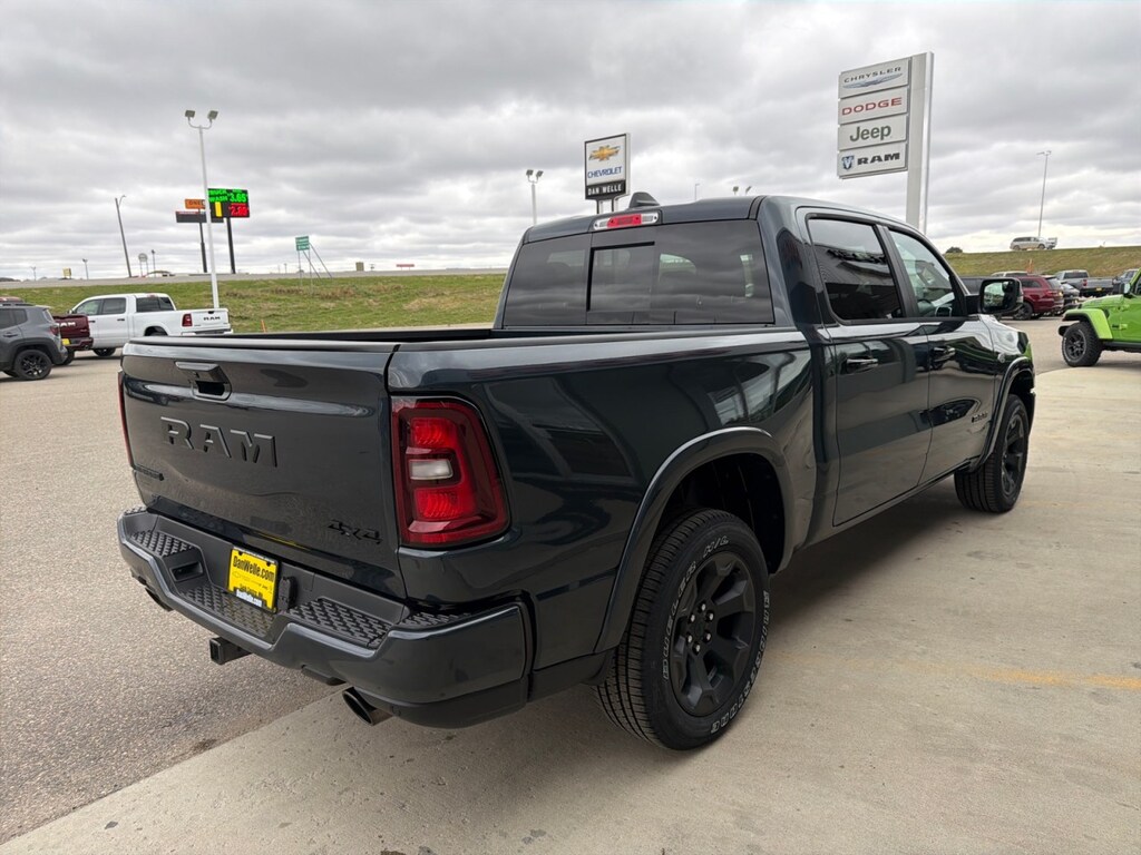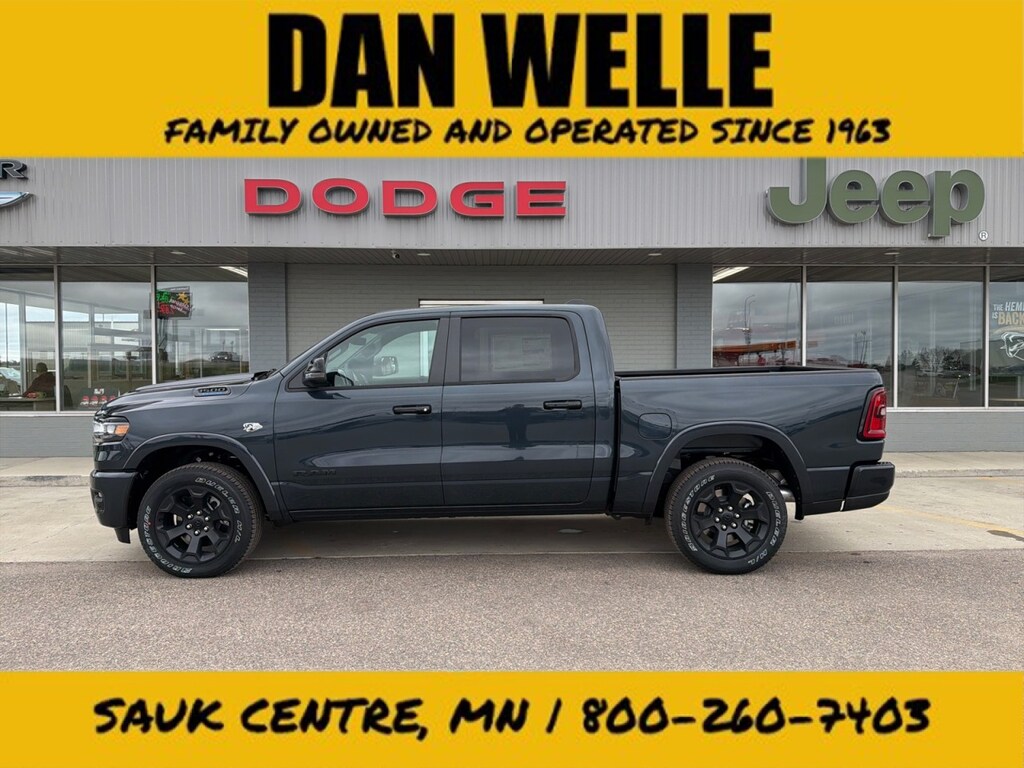 This outstanding example of a 2026 Ram 1500 Big Horn is offered by Dan Welle Chevrolet CDJR. This Ram includes: 33 GALLON FUEL TANK MOPAR FRONT Floor Mats MYFLEXCARE SERVICE PLAN TRANSMISSION: 8-SPEED AUTOMATIC (8HP75) 8-Speed A/T A/T BIG HORN LEVEL 2 EQUIPMENT GROUP Multi-Zone A/C Driver Vanity Mirror Steering Wheel Audio Controls Integrated Turn Signal Mirrors HD Radio Chrome Wheels Tires - Front Performance Passenger Vanity Mirror Navigation System A/C Power Mirror(s) Heated Steering Wheel Climate Control Auto-Dimming Rearview Mirror Universal Garage Door Opener Heated Mirrors Security System Leather Steering Wheel Rear Defrost AM/FM Stereo Heated Front Seat(s) Satellite Radio Adjustable Pedals Tires - Rear Performance Bluetooth Connection Passenger Illuminated Visor Mirror Premium Sound System Driver Illuminated Vanity Mirror Power Folding Mirrors Requires Subscription Remote Trunk Release MP3 Capability CLUSTER 12" TFT COLOR DISPLAY QUICK ORDER PACKAGE 27Z BIG HORN ENGINE: 5.7L V8 HEMI MDS VVT ETORQUE Gasoline/Mild Electric Hybrid 8 Cylinder Engine FORGED BLUE METALLIC DUAL-PANE PANORAMIC SUNROOF Panoramic Roof Generic Sun/Moonroof Sun/Moonroof 3.92 REAR AXLE RATIO NIGHT EDITION Integrated Turn Signal Mirrors Chrome Wheels Tires - Front Performance Locking/Limited Slip Differential Power Mirror(s) Heated Mirrors Tires - Rear Performance Power Folding Mirrors *Note - For third party subscriptions or services, please contact the dealer for more information.* You appreciate the finer things in life, the vehicle you drive should not be the exception. Style, performance, sophistication is in a class of its own with this stunning Ram 1500 Big Horn. When Ram created this vehicle with 4 wheel drive, they immediately enhanced the performance ability. Easily switch between two and four wheel drive to take advantage of the improved traction. Where do you need to go today? Just punch it into the on-board navigation system and hit the road.