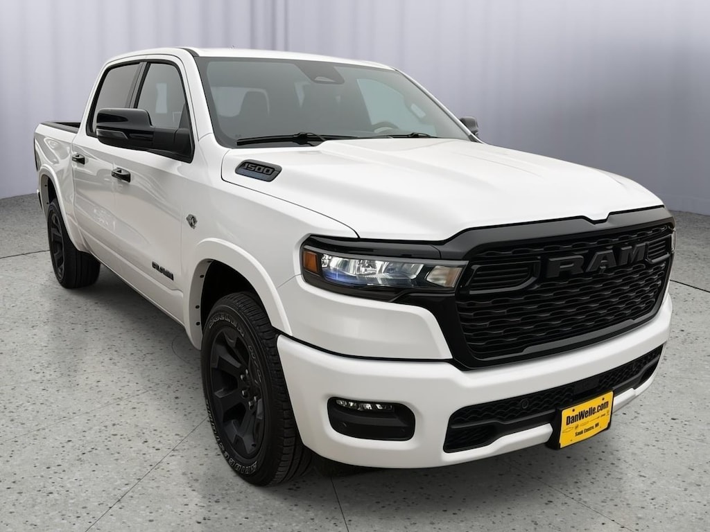This 2026 Ram 1500 Big Horn is offered to you for sale by Dan Welle Chevrolet CDJR. This Ram includes: 33 GALLON FUEL TANK BRIGHT WHITE CLEARCOAT MOPAR FRONT Floor Mats MYFLEXCARE SERVICE PLAN TRANSMISSION: 8-SPEED AUTOMATIC (8HP75) 8-Speed A/T A/T MANUFACTURER'S STATEMENT OF ORIGIN BIG HORN LEVEL 2 EQUIPMENT GROUP Multi-Zone A/C Driver Vanity Mirror Steering Wheel Audio Controls Integrated Turn Signal Mirrors HD Radio Chrome Wheels Tires - Front Performance Passenger Vanity Mirror Navigation System A/C Power Mirror(s) Heated Steering Wheel Climate Control Auto-Dimming Rearview Mirror Universal Garage Door Opener Heated Mirrors Security System Leather Steering Wheel Rear Defrost AM/FM Stereo Heated Front Seat(s) Satellite Radio Adjustable Pedals Tires - Rear Performance Bluetooth Connection Passenger Illuminated Visor Mirror Premium Sound System Driver Illuminated Vanity Mirror Power Folding Mirrors Requires Subscription Remote Trunk Release MP3 Capability CLUSTER 12 TFT COLOR DISPLAY BED UTILITY GROUP Bed Liner QUICK ORDER PACKAGE 27Z BIG HORN ENGINE: 5.7L V8 HEMI MDS VVT ETORQUE Gasoline/Mild Electric Hybrid 8 Cylinder Engine 3.92 REAR AXLE RATIO NIGHT EDITION Integrated Turn Signal Mirrors Chrome Wheels Tires - Front Performance Locking/Limited Slip Differential Power Mirror(s) Heated Mirrors Tires - Rear Performance Power Folding Mirrors *Note - For third party subscriptions or services, please contact the dealer for more information.* Pull up in the vehicle and the valet will want to parked on the front row. This Ram 1500 Big Horn is the vehicle others dream to own. Don't miss your chance to make it your new ride. Handle any terrain with ease thanks to this grippy 4WD. Whether you're on a slick pavement or exploring the back country, you'll be able to do it with confidence. Put away your phone and focus on the road, your new vehicle has navigation.