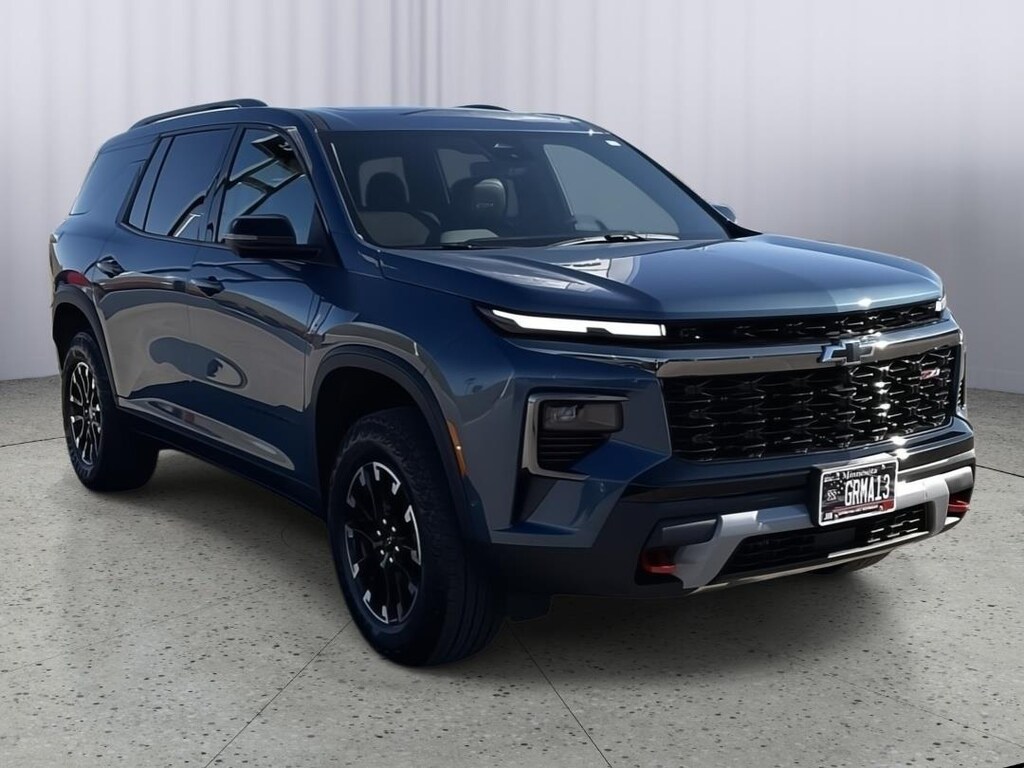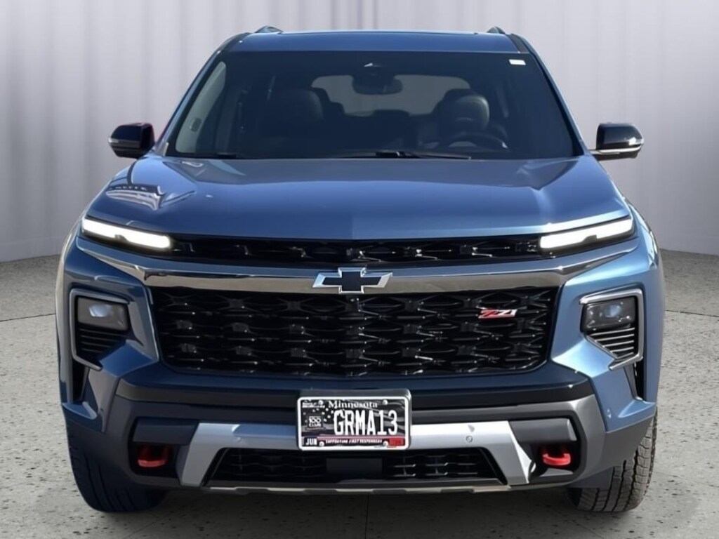 EMISSIONS, COLORADO, CONNECTICUT, DELAWARE, MAINE, MARYLAND, MASSACHUSETTS, MINNESOTA, NEVADA, NEW JERSEY, NEW MEXICO, NEW YORK, OREGON, PENNSYLVANIA, RHODE ISLAND, VERMONT AND WASHINGTON STATE REQUIREMENTS, ENGINE, 2.5L TURBO DOHC SIDI WITH VARIABLE VALVE TIMING (VVT), TRANSMISSION, 8-SPEED AUTOMATIC, WHEELS, 18 (45.7 CM) HIGH GLOSS BLACK PAINTED MACHINED-FACE ALUMINUM, LAKESHORE BLUE METALLIC, SEATS, FRONT BUCKET, Z71 JET BLACK WITH TORCH RED STITCHING, EVOTEX SEAT TRIM, ENHANCED DRIVING PACKAGE, DRIVER CONFIDENCE PACKAGE, LPO, FLOOR LINER PACKAGE, SUNROOF, POWER, DUAL GLASS, PANORAMIC, SLIDING, WITH POWER SUNSHADE, LPO, MOLDED SPLASH GUARDS, LICENSE PLATE FRONT MOUNTING PACKAGE, AUDIO SYSTEM FEATURE, BOSE PREMIUM 12-SPEAKER SYSTEM, ACTIVE NOISE CANCELLATION, LPO, ALL-WEATHER FLOOR LINERS, FIRST AND SECOND ROW, LPO, ALL-WEATHER FLOOR LINER, THIRD ROW, POWER OUTLET, 120-VOLT, LOCATED ON THE REAR OF CENTER CONSOLE, REAR CAMERA MIRROR, LPO, INTEGRATED CARGO LINER, 3 YEARS ONSTAR ONE, HD SURROUND VISION, SUPER CRUISE, ENHANCED AUTOMATIC PARKING ASSIST, TRAFFIC SIGN RECOGNITION, REAR PEDESTRIAN ALERT, DRIVER ATTENTION ASSIST Come on in to Dan Welle's Southtown Chevrolet today at 1505 Main Street South Sauk Centre MN 56378 or call (320) 352-5255 to schedule a test drive!